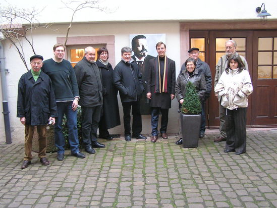 Nach einem ersten Gang über den Heidelberger Weihnachtsmarkt am Rathaus, wurden die Fahrtteilnehmer herzlich vom Leiter der Gedenkstätte, Dr. Walter Mühlhausen, in der angrenzenden alten Backstube des Museums, in Empfang genommen. Diese Örtlichkeit brachte Dr. Mühlhausen auch zunächst den Teilnehmern nahe, denn bis in das Jahr 1988 hinein wurde dort noch Brot gebacken, um schließlich im gegenüberliegenden Café Burkardt verkauft zu werden. „Auch Friedrich Ebert hatte in seinen Kindheitstagen in diesem Innenhof den frischen Brotgeruch in der Nase“ führte Walter Mühlhausen weiter aus. Eben in diesem Innenhof befindet sich die nur 48 m2 große Wohnung, in welcher Friedrich Ebert am 4. Februar 1871 um 12 Uhr geboren wurde. Der Leiter der Gedenkstätte informierte seine Gäste bei der Begrüßung ebenso darüber, dass es in Deutschland fünf Stiftungen öffentlichen Rechts gibt, die das Gedenken an politische Persönlichkeiten von historischer Größe pflegen und historische Forschung betreiben: Die Bundeskanzler-Willy-Brandt-Stiftung in Berlin und Lübeck, die Stiftung Bundeskanzler-Adenauer-Haus in Rhöndorf bei Bonn, die Stiftung Bundespräsident-Theodor-Heuss-Haus in Stuttgart, die Otto-von-Bismarck-Stiftung in Friedrichsruh und eben die Stiftung Reichspräsident-Friedrich-Ebert-Gedenkstätte, deren Kuratoriums-Vorsitzender der ehemalige Bremer Oberbürgermeister Henning Scherf ist. Im Anschluss hieran führte das Ortsvereinsmitglied Holger Schröder, der zugleich Besucherführer in der Gedenkstätte ist, die Teilnehmer durch Geburtswohnung und Ausstellung. Insbesondere die Gründungsphase und der Aufstieg der Partei im Kaiserreich unterstreichen dabei den seit jeher unbedingten Einsatz der SPD für die sozial Benachteiligten und verdeutlichen eine gut organisierte, zuerst ‚klientelbildende’ Parteiarbeit. Und im Rahmen der Revolution 1918 ist es dann in erster Linie der Volkspartei SPD zu verdanken, dass sich politische Freiheits- und Bürgerrechte als verfassungsrechtlich verbriefte Grundrechte verankern, die zuvor rund ein Jahrhundert lang auch (‚linksliberale’) Teile des Bürgertums gefordert hatten. Der weitere Weg der Ausstellung zeigt dann die vielfältigen politischen Herausforderungen der Weimarer Zeit. Im weiteren Verlauf der Ausstellung wurde erkennbar, dass vor allem der Versailler Vertrag die innere und äußere Entwicklung der ersten deutschen Demokratie schwer belastete, wovon eine Vielzahl von historischen Dokumenten und Bildern aus der Anfangszeit der Republik Zeugnis geben. Während der Führung wurde ebenso deutlich, welchem politische Stil und Amtsverständnis Ebert nachhing. Schröder führte im Weiteren aus, dass Ebert „immer darauf bedacht gewesen sei, überparteilich und im Sinne der soziale Demokratie sowie der Republik zu handeln“. In einer abschließenden Runde wurde klar, dass es auch Eberts Wirken zu verdanken war, dass die erste Republik nicht sofort nach wenigen Monaten wieder beseitigt wurde. Sein Eintreten für diese erste deutsche Demokratie verdiene weitaus größere Aufmerksamkeit: Dabei stellte man zugleich fest, dass das Leben und Wirken des ersten Reichspräsidenten Friedrich Ebert im Geschichtsbewusstsein der Menschen und der Kinder und Jugendlichen in den Schulen kaum oder nur eine geringe Bedeutung einnehme.
