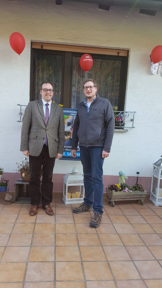 Am Sonntag, den 26. März war es nun endgültig klar: Der junge Sozialdemokrat Sascha Weber (35) wird Bürgermeister der Gemeinde Wald-Michelbach. Sascha Weber und der Vorsitzende des Ortsvereins Mühlhausen-Rettigheim-Tairnbach Holger Schröder kennen sich schon seit frühen Jusozeiten. Gemeinsam mit weiteren Mitstreitern gründeten sie vor 18 Jahren eine überregionale Juso-AG im Odenwald. Selbstverständlich ließ es sich Schröder nicht nehmen, einer der ersten Gratulanten zu sein und der Feier in seinem Heimatort beizuwohnen.